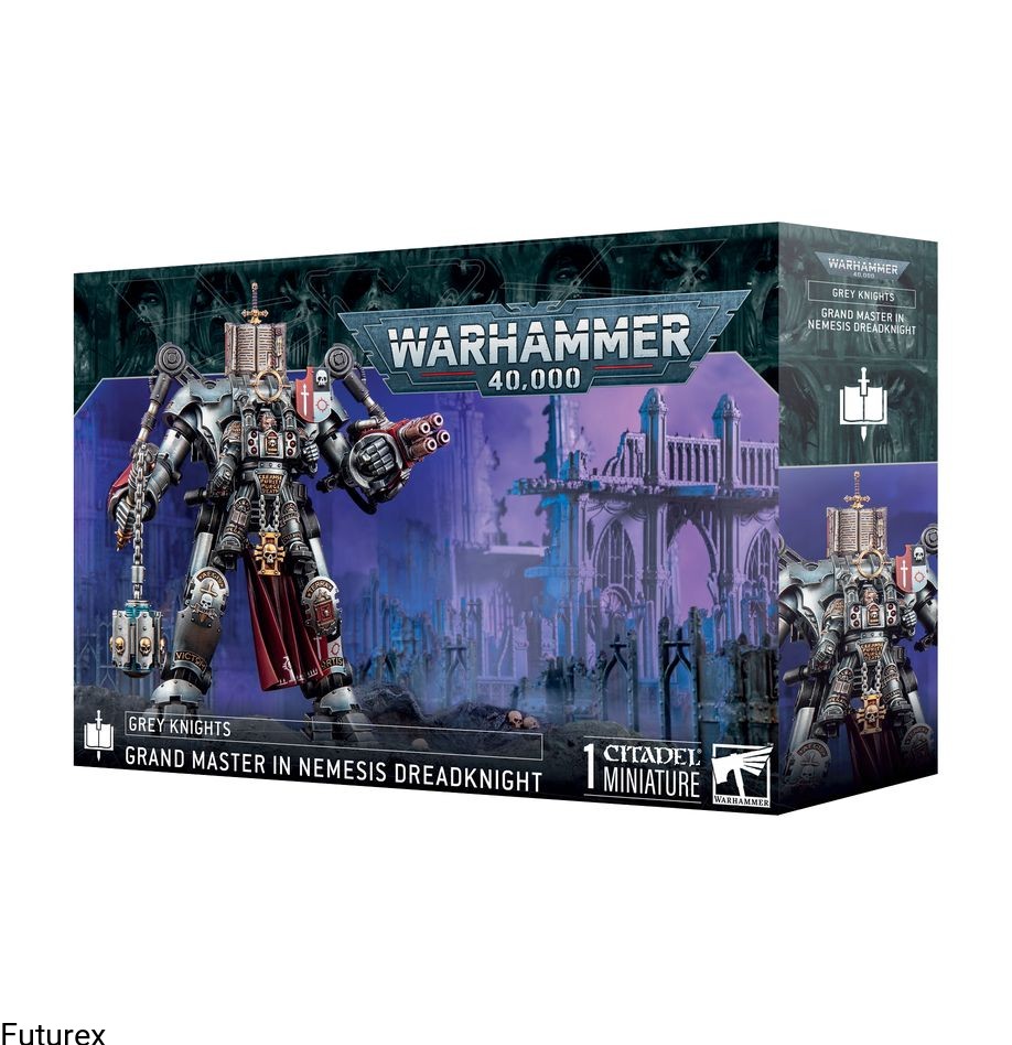 This kit builds a Nemesis Dreadknight or a Grand Master in Nemesis Dreadknight, and contains an upgrade sprue that includes new weapons like the Nemesis mace, Nemesis flail, and sublimator, as well as a host of new cosmetic enhancements.