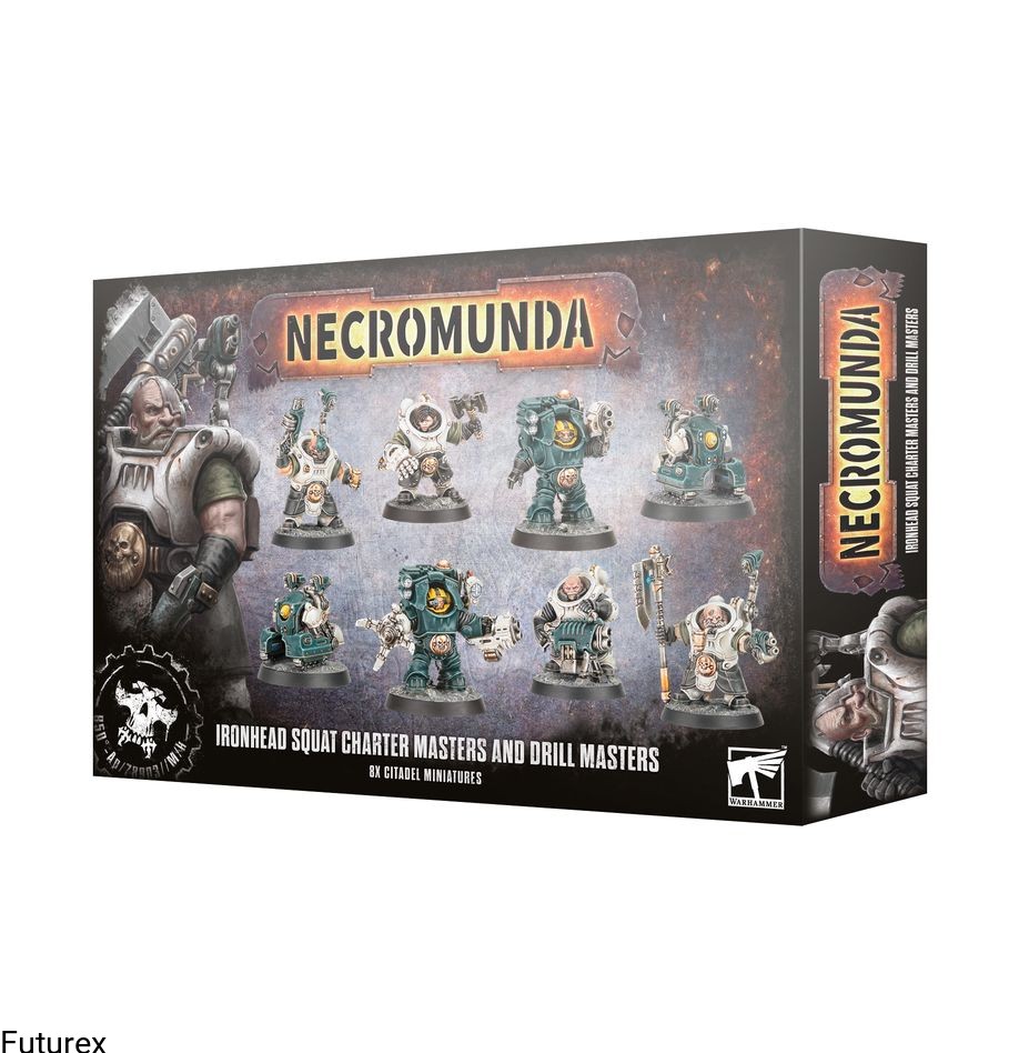 The Ironhead Squat Prospectors are highly skilled and hardy people, whose exceptional mastery of their fields comes in mighty handy on dangerous expeditions. Bring their hard-earned expertise into Necromunda with a new pack of Charter Masters and Drill Masters, containing two Exo Masters, two Charter Masters, two Drill Masters, and two Techmite Autoveyors – autonomous companions that use powerful sensor suites to sniff out valuable seams of ore.